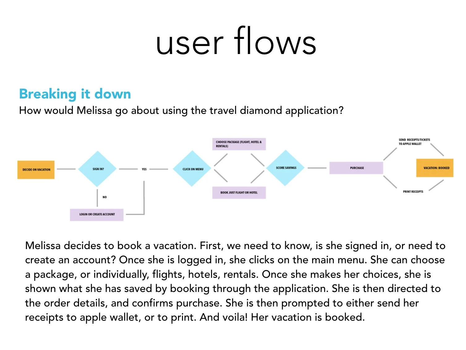 Travel Diamond is a budget-friendly & time-saving mobile application I designed in a ten-week User Experience Circuit. The prompt was simple: create something that people need. This project was my first time researching competitors, interviewing prospective users, synthesizing data, and mocking up a prototype to be deployed in a final usability test. The programs used in this project were Adobe Photoshop, Sketch, InVision, and Optimal Workshop (card sorting software). Although not every step of the process is illustrated below, the highlights remain.